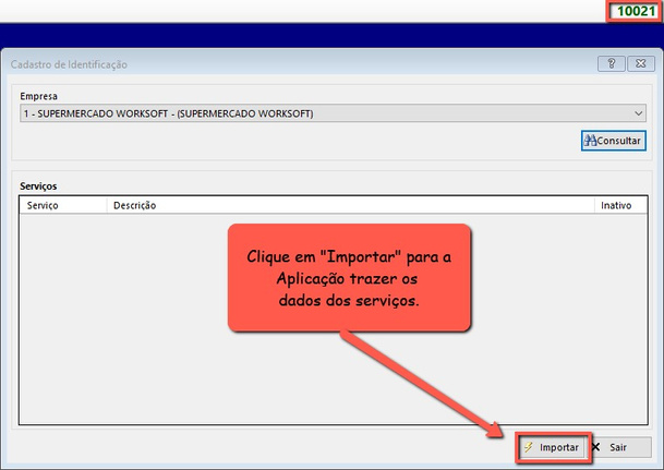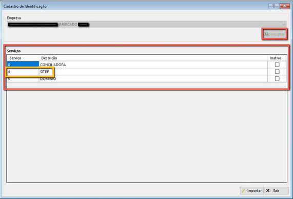 Ainda no formulário 10021, informe a empresa e clique em “CONSULTAR”. Agora o serviço de SITEF deve aparecer na tela. Se isso não ocorrer, a Aplicação ainda não está habilitada para o uso desse módulo.