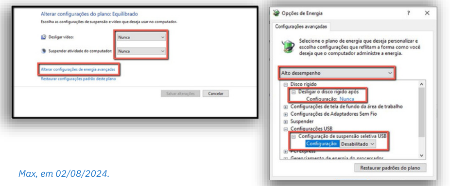 ▪ No Windows acesse Painel de Controle > Todos os Itens do Painel de Controle > Opções de Energia > Editar Configurações do Plano
