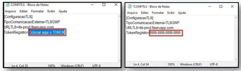 Abra o arquivo CONFITLS. No campo “Colocar aqui o TOKEN”, insira o token fornecido.