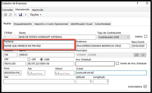 Agora no PDV, ligue o PIN PAD e verifique as informações que estão na sua tela.