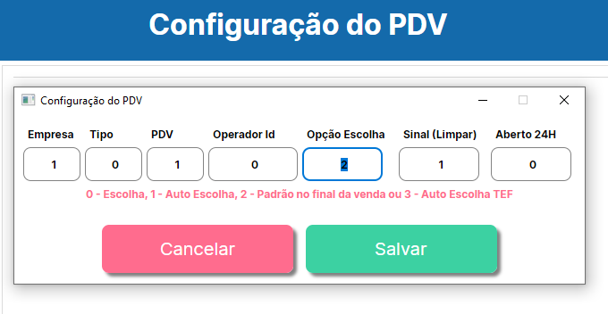 Opções de Configuração do PDV