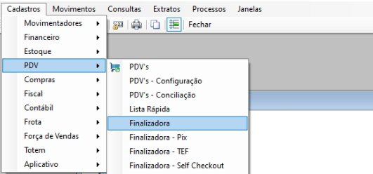 Cadastro de Finalizadora —> Cadastros - PDV - Finalizadora (4016)