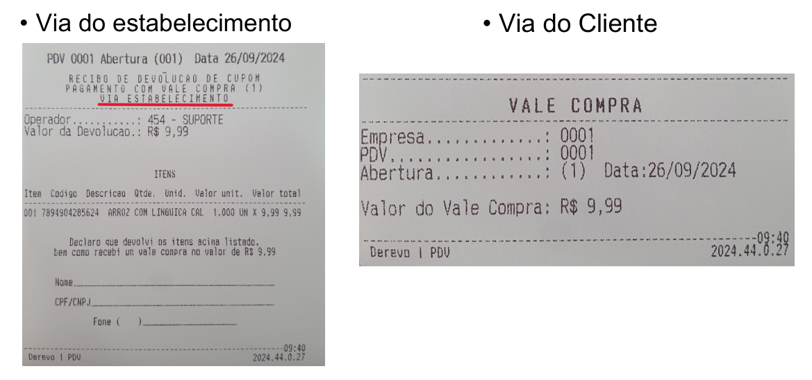 • Ao prosseguir vai imprimir uma via do estabelecimento e uma via do cliente