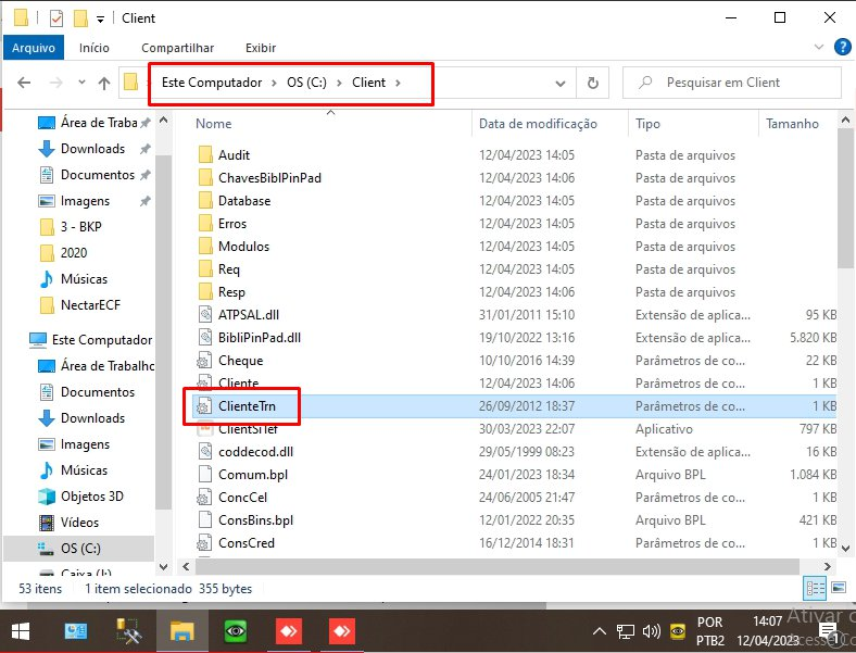 Copiar os arquivos clientsitef.rar \ Simulador Express \ wnbtlscli