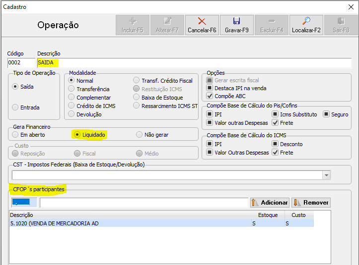 ESTOQUE > NOTA FISCAL > OPERAÇÃO