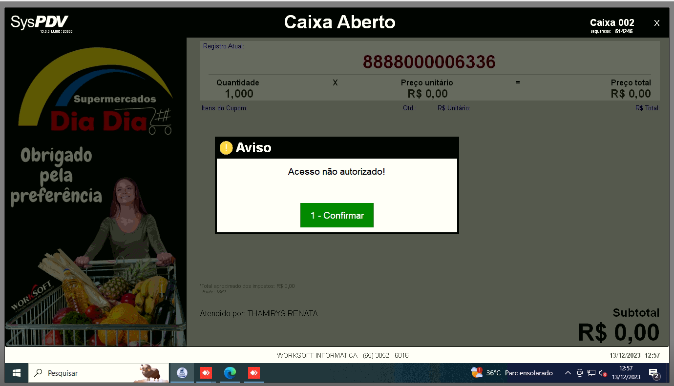 Ao apresentar esse erro no caixa